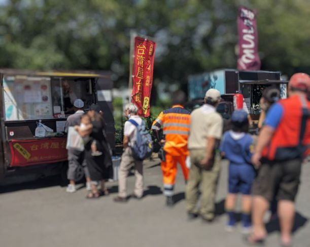 自衛隊、市役所、キッチンカー2台がそれぞれ食料供給訓練を行っていて大賑わいでした٩(ˊᗜˋ*)و”