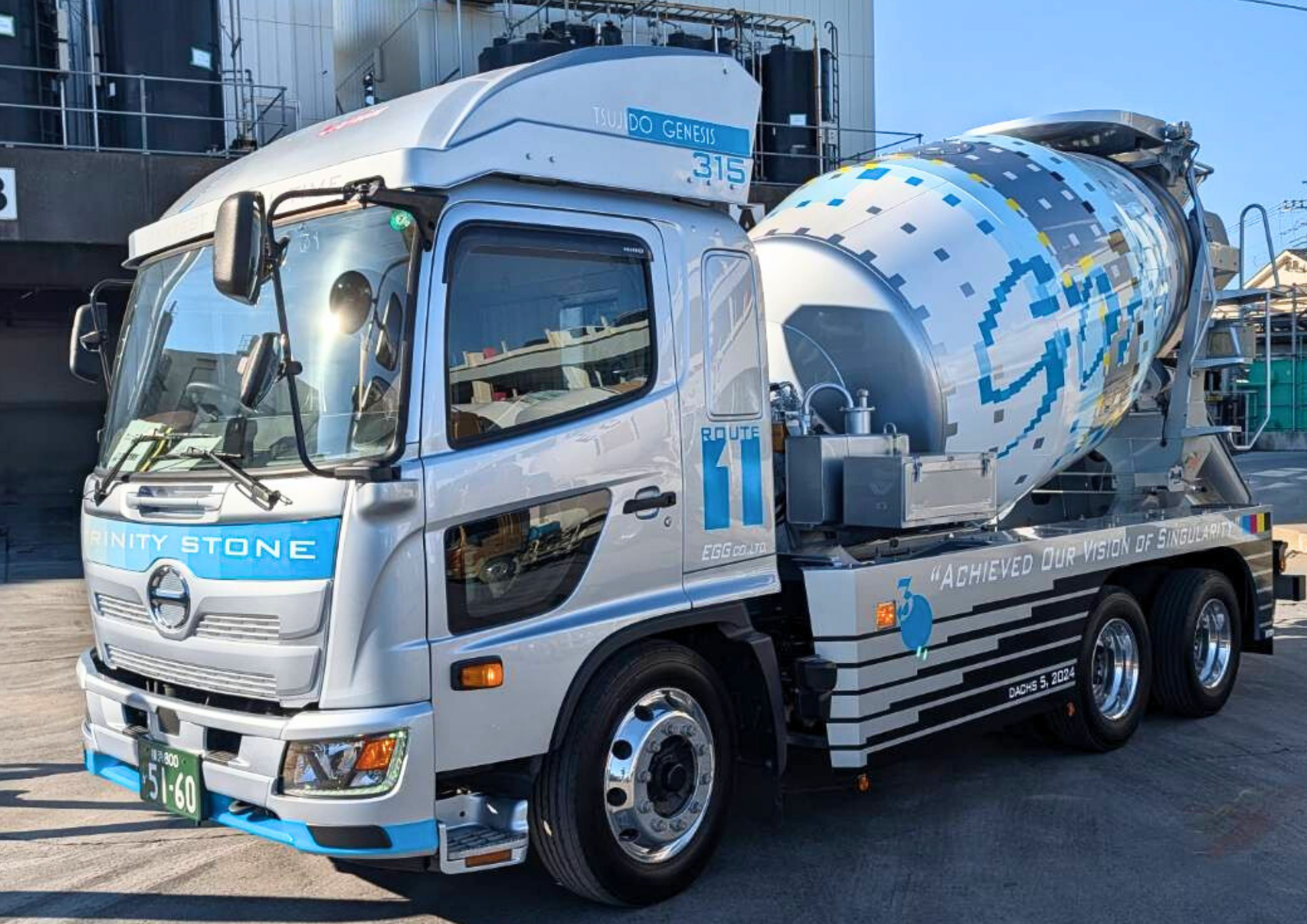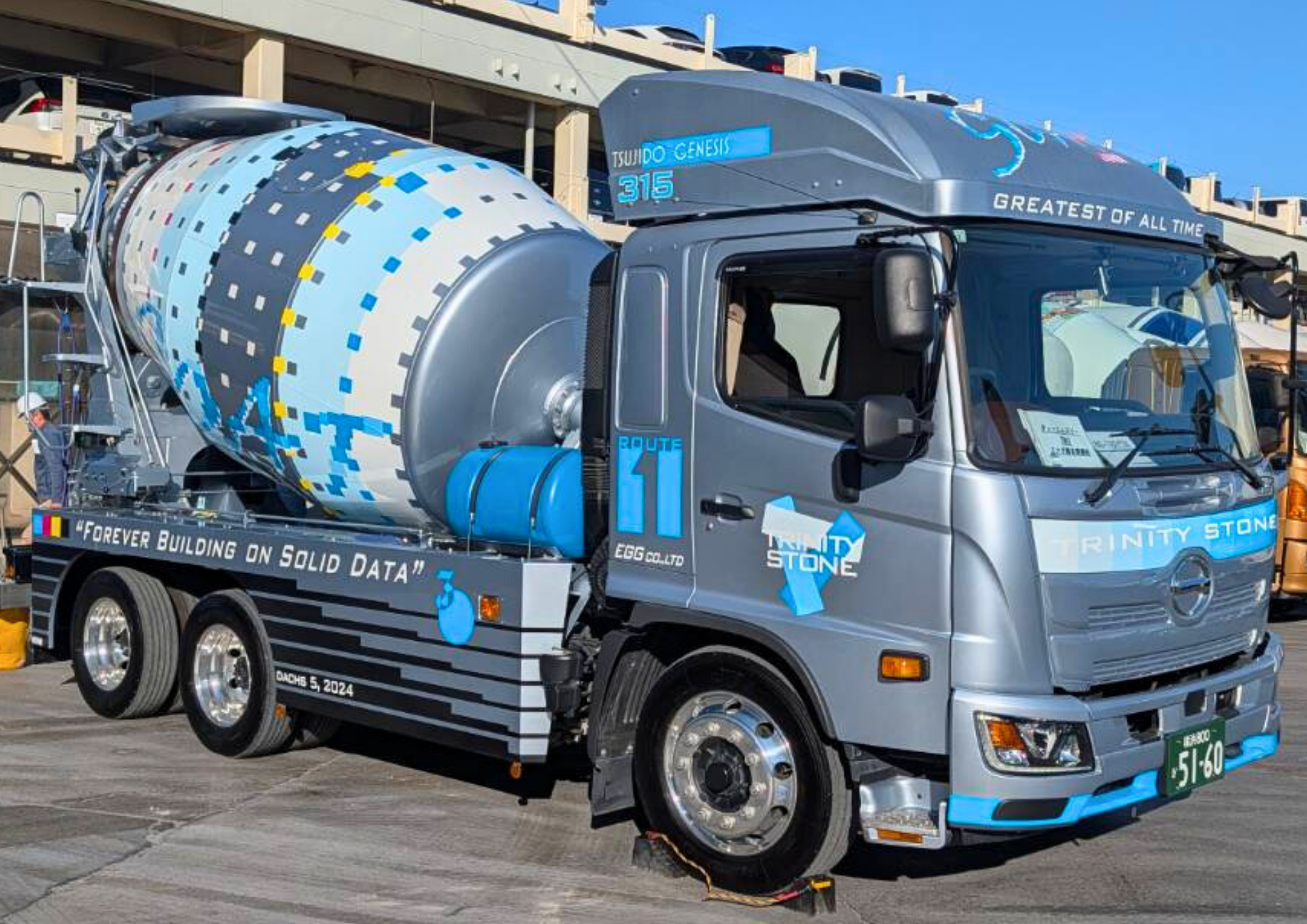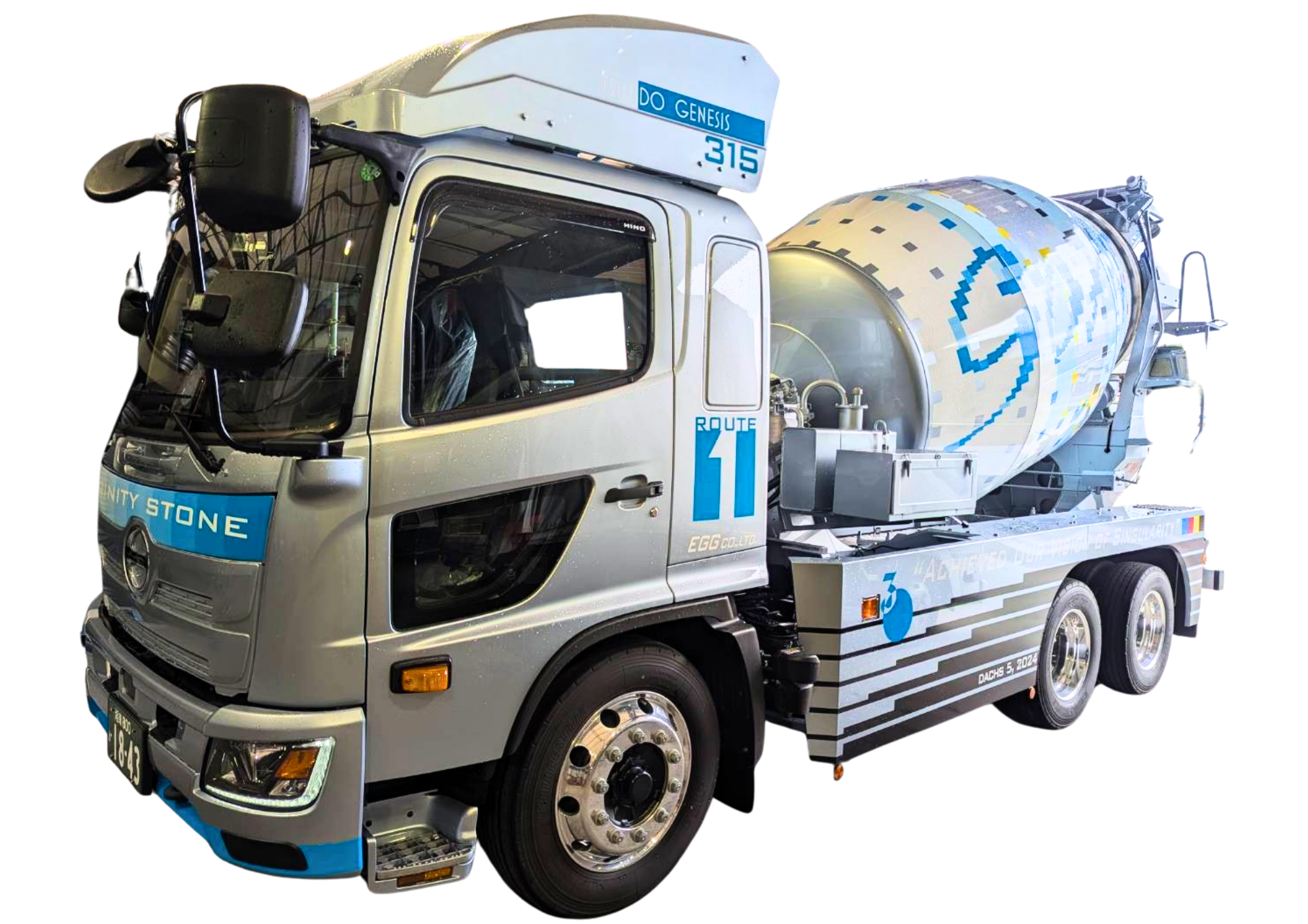 ちなみに、大きく書かれた「GOAT」という文字。 これ、最近の流行り言葉でもありますが、「Greatest Of All Time(史上最高!)」という意味なんです。 「最高にイケてるミキサー車!」というビックボスのメッセージが詰まっています。