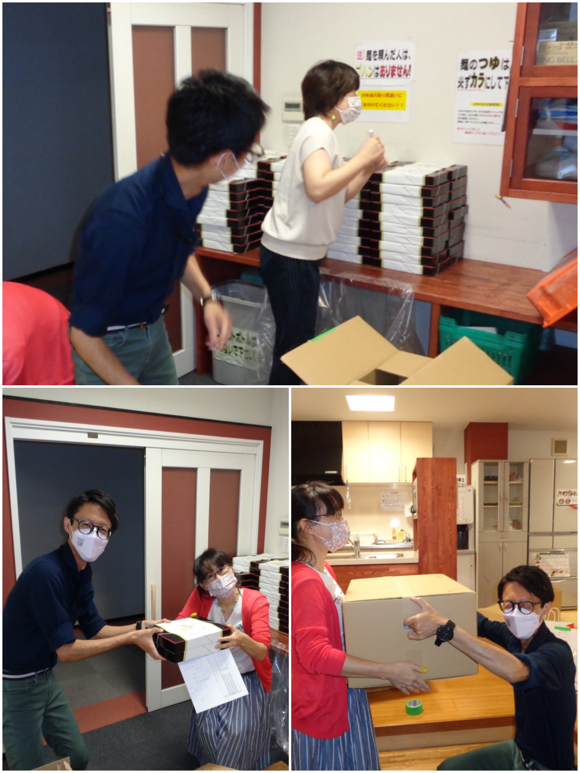 さぁ、本社にまとめて届くお弁当を各工場・営業所に送るために振り分けます。